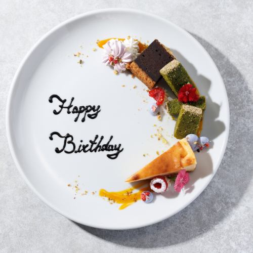 記念日・誕生日の演出もお任せください。パティシエが丹精込めて作るかわいいプレートで忘れられない日をお過ごしいただけます。